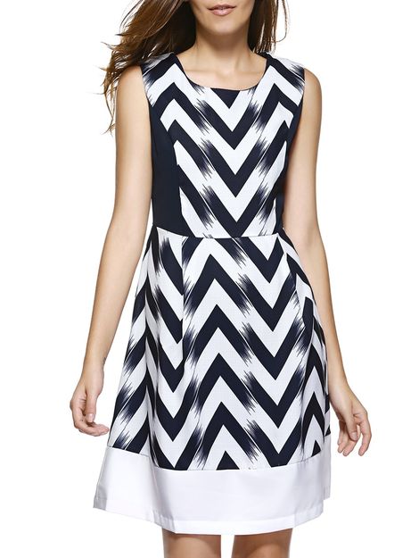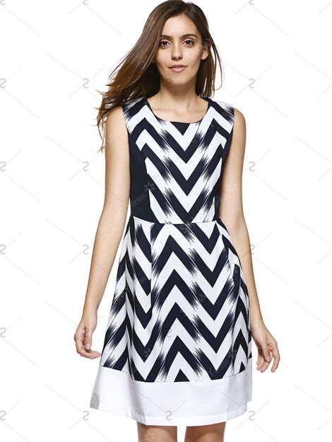 Fashion Zigzag Stripe Fit and Flare Sleeveless Dress For Women