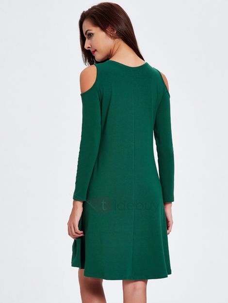 Off-the-Shoulder Long Sleeve High-Low Day Dress Green
